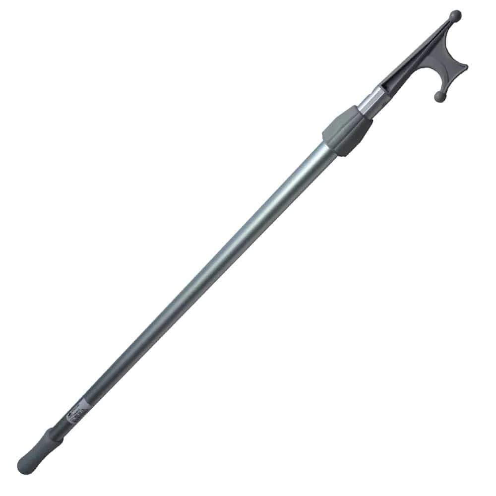 Nagyon masszív, teleszkópos csáklya. Anyag: eloxált alumínium. Hossza: 120-210 cm. A bajonet zár segítségével tetszés szerint fixálható a csáklya hossza. Nyél átmérője: 25 mm. Csáklyafej anyag: erősített műanyag. Színe: szürke.